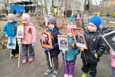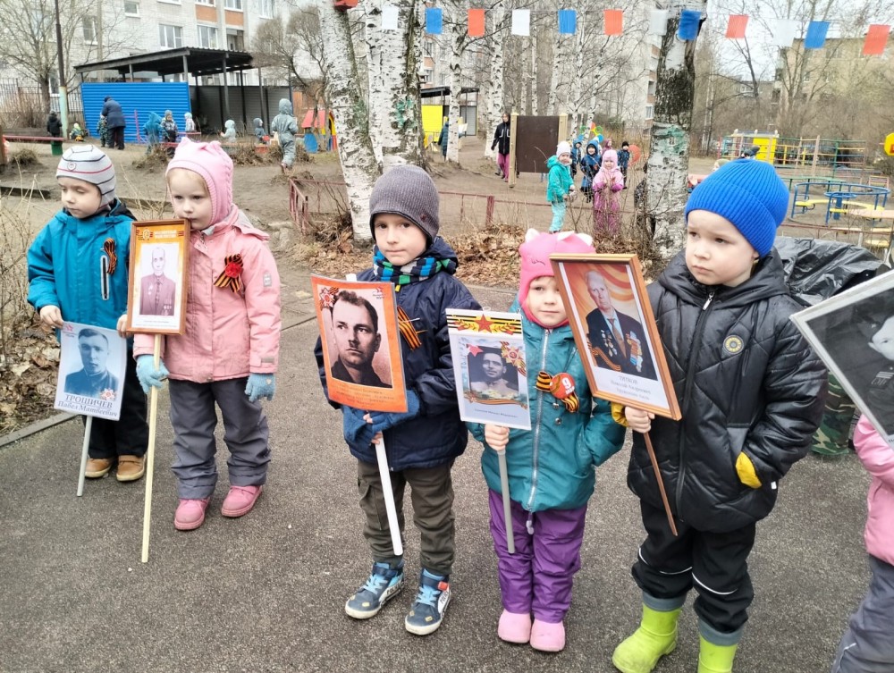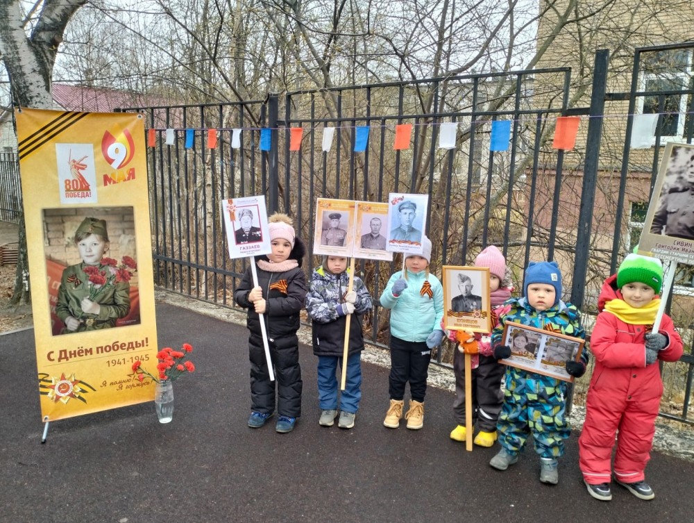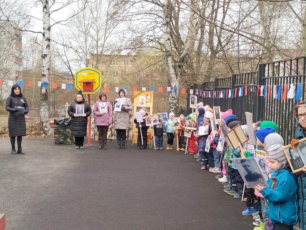 Вчера в нашем дошкольном учреждении прошла акция «Бессмертный полк». Воспитанники детского сада совместно с родителями подготовили портреты своих родных – участников ВОВ.