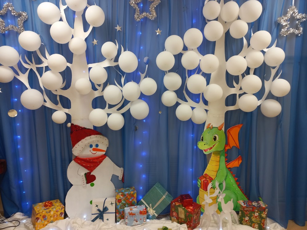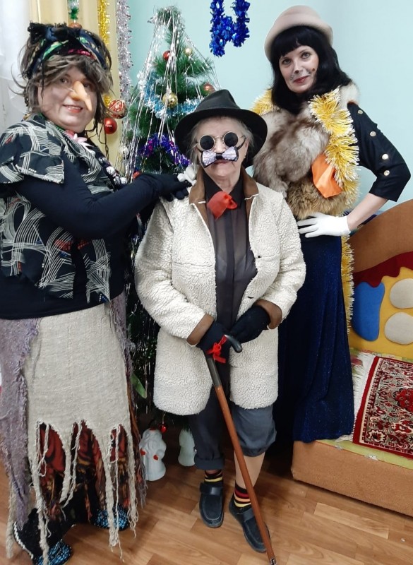 Педагоги, участвовавшие в новогодних представлениях, проявили себя как талантливые артисты и показали своё творческое мастерство, артистизм, задор и организаторские способности. Они перевоплощались в разных героев: снегурочку, снеговика, лису Алису, кота Базилио, Петрушку, царя, вьюгу.