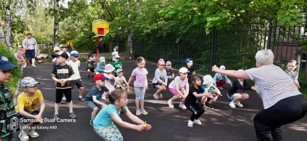 Вот и наступила самая замечательная пора - лето, солнце, воздух. Естественные факторы природы (солнечные лучи, воздух) закаляют организм, повышают сопротивляемость простудным заболеваниям. Поэтому утро в детском саду начинается с зарядки и конечно, любимая детьми физкультура на свежем воздухе. У нас есть спортивная площадка, на которой дети могут свободно передвигаться, выполнять различные упражнения и играть в подвижные игры.