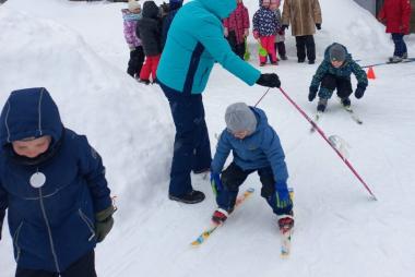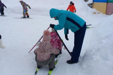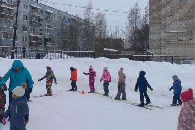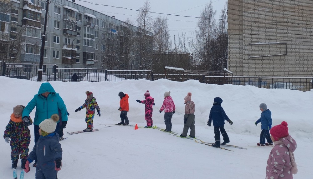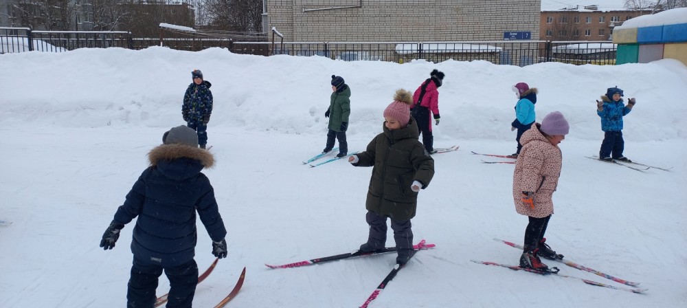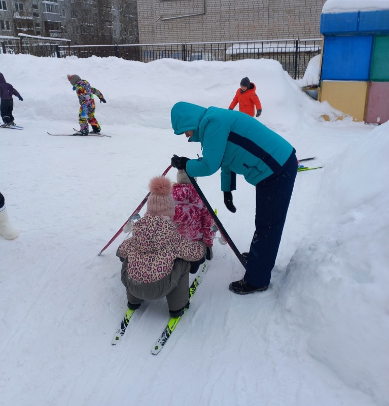 На протяжении многих лет родители с удовольствием приносят лыжи в детский сад, где инструктор по физической культуре Титова Екатерина Анатольевна учит ребят не только стоять на лыжах, но и совершать повороты, скольжение, спуск и подъем с горы и в гору. На родительском собрании рассказывает, как правильно подобрать лыжи, учитывая рост, и подобрать правильную одежду для занятия. В информационном уголке для родителей размещена информация о пользе лыжных прогулок.